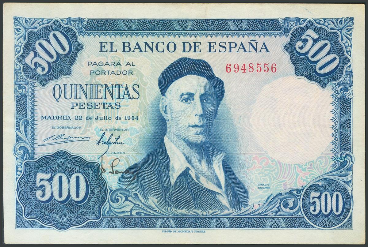 500 Pesetas. 22 de Julio de 1954. Sin serie. (Edifil 2017: 468). MBC+.