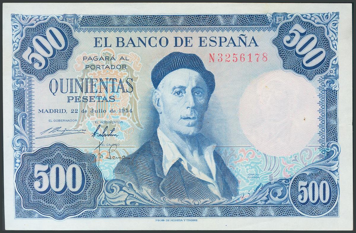 500 Pesetas. 22 de Julio de 1954. Serie N. (Edifil 2017: 468b). Apresto original. SC-.