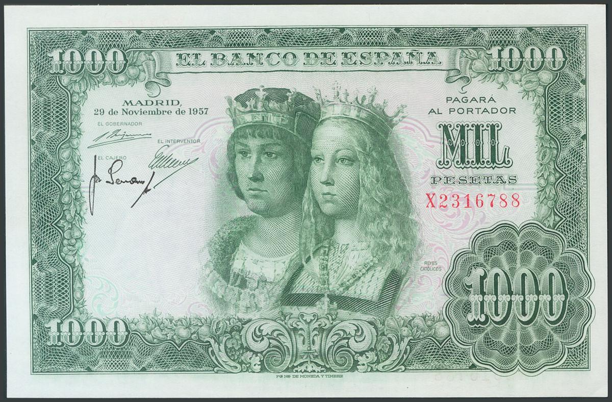 1000 Pesetas. 29 de Noviembre de 1957. Serie X. (Edifil 2017: 469b). Apresto original. SC.