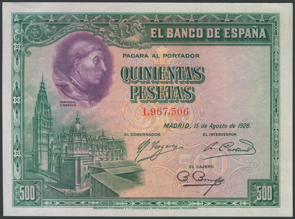 500 Pesetas. 15 de Agosto de 1928. Sin serie. (Edifil 2017: 356). Apresto original. SC-.