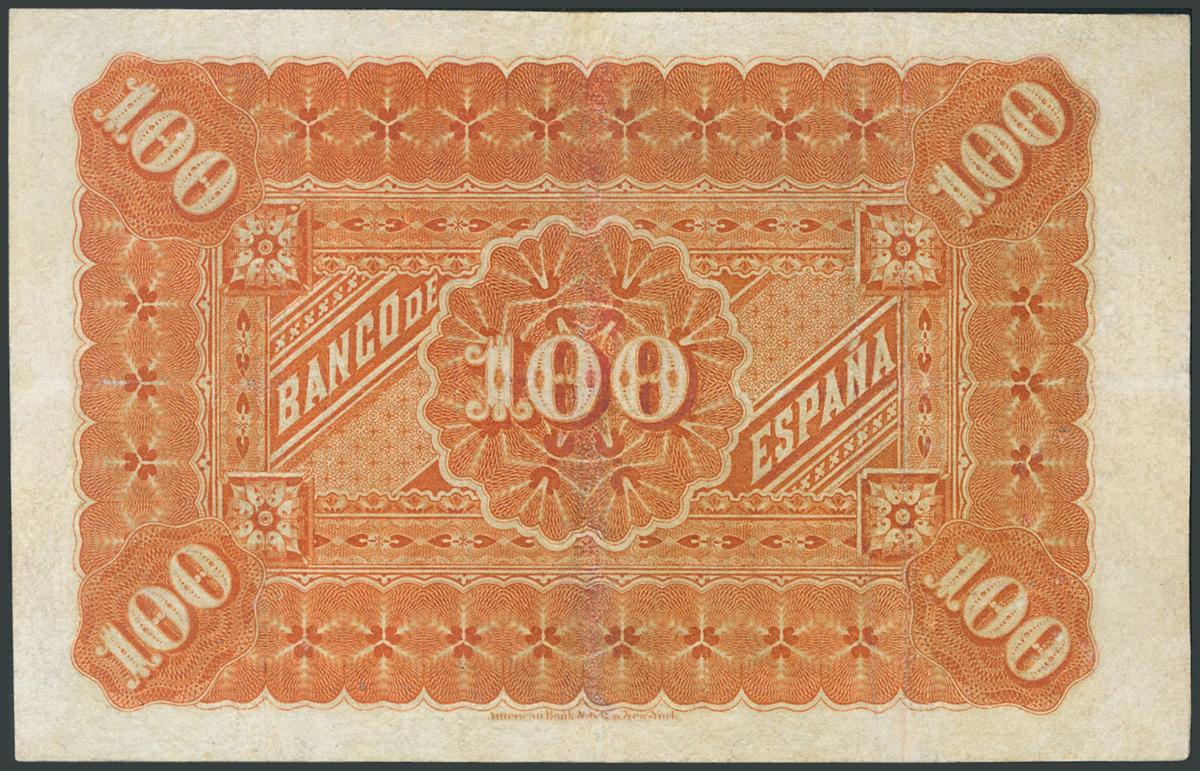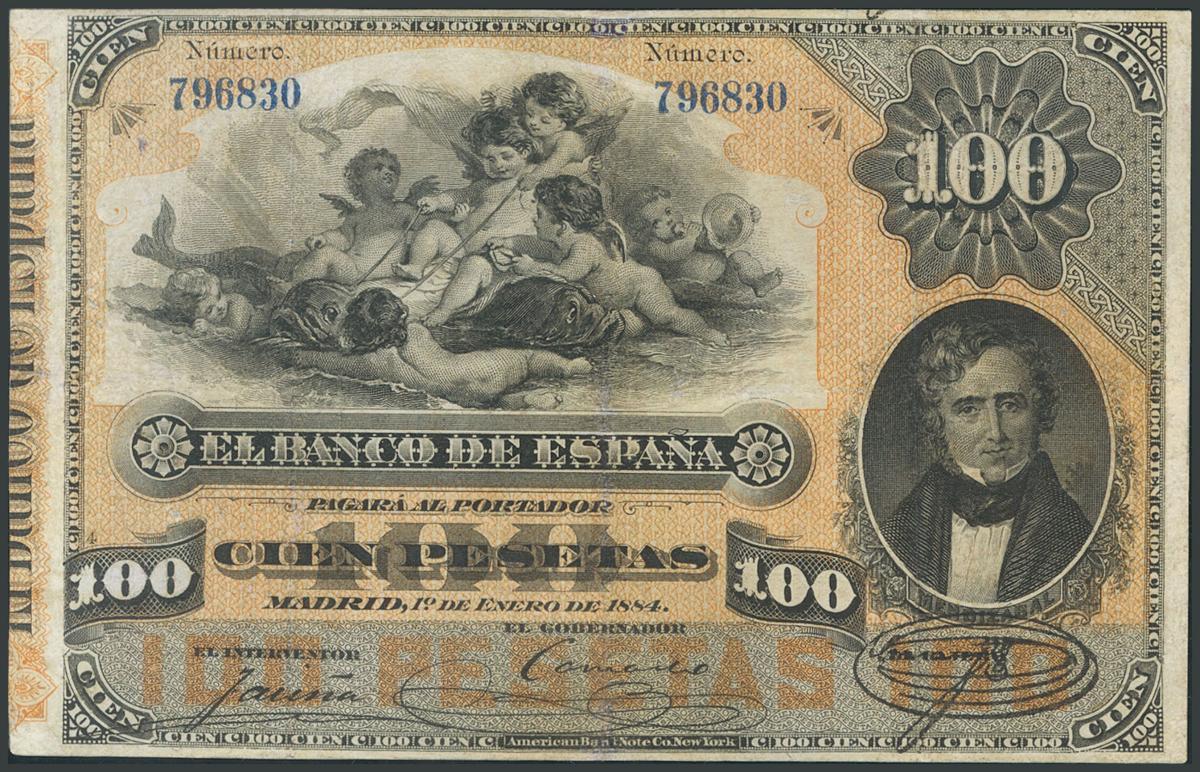 100 Pesetas. 1 de Enero de 1884. Sin serie. (Edifil 2017: 284). Inusual y profesionalmente restaurado.