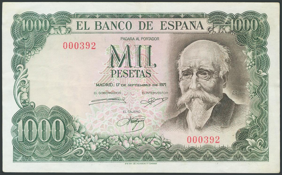 1000 Pesetas. 17 de Septiembre de 1971. Sin serie y numeración muy baja. (Edifil 2017: 474). MBC+.