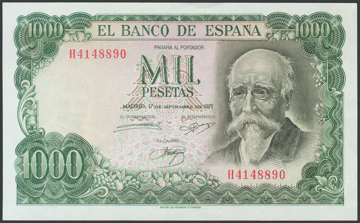 1000 Pesetas. 17 de Septiembre de 1971. Serie H. (Edifil 2017: 474). Apresto original. SC-.