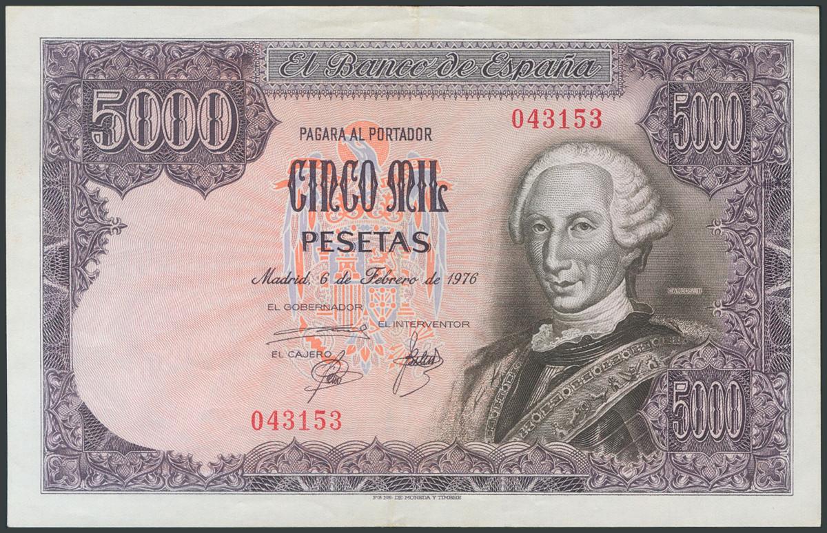 5000 Pesetas. 6 de Febrero de 1976. Sin serie. (Edifil 2017: 475). EBC.
