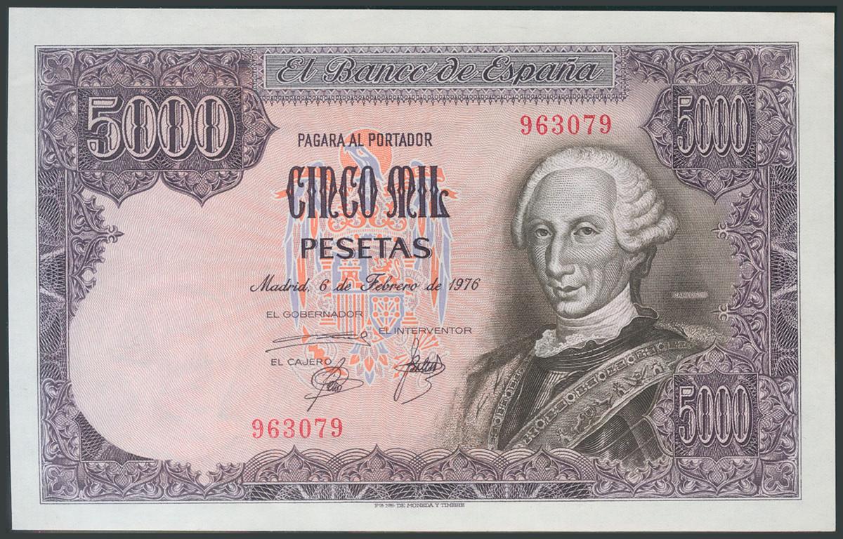 5000 Pesetas. 6 de Febrero de 1976. Sin serie. (Edifil 2017: 475). SC-.