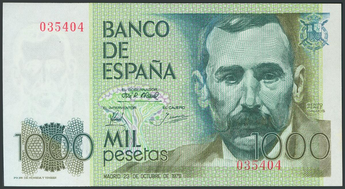 1000 Pesetas. 23 de Octubre de 1979. Sin serie y numeración baja. (Edifil 2017: 477). SC.