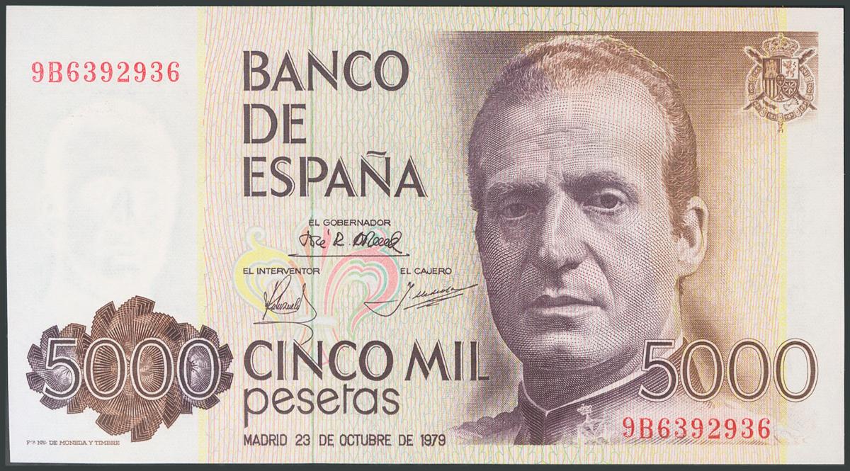 5000 Pesetas. 23 de Octubre de 1979. Serie 9B, numeración especial y capicúa. (Edifil 2017: 478b). Inusual. SC.