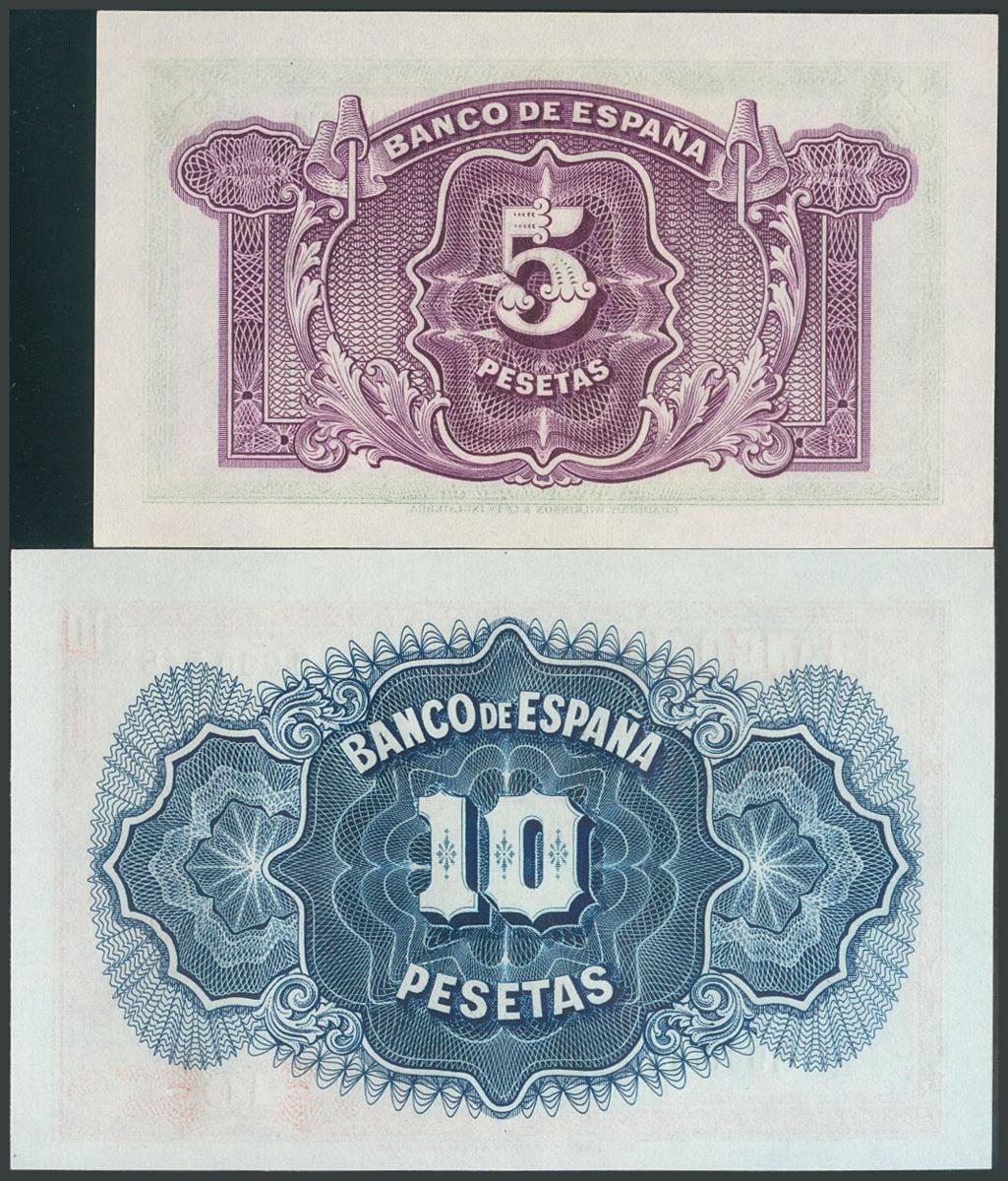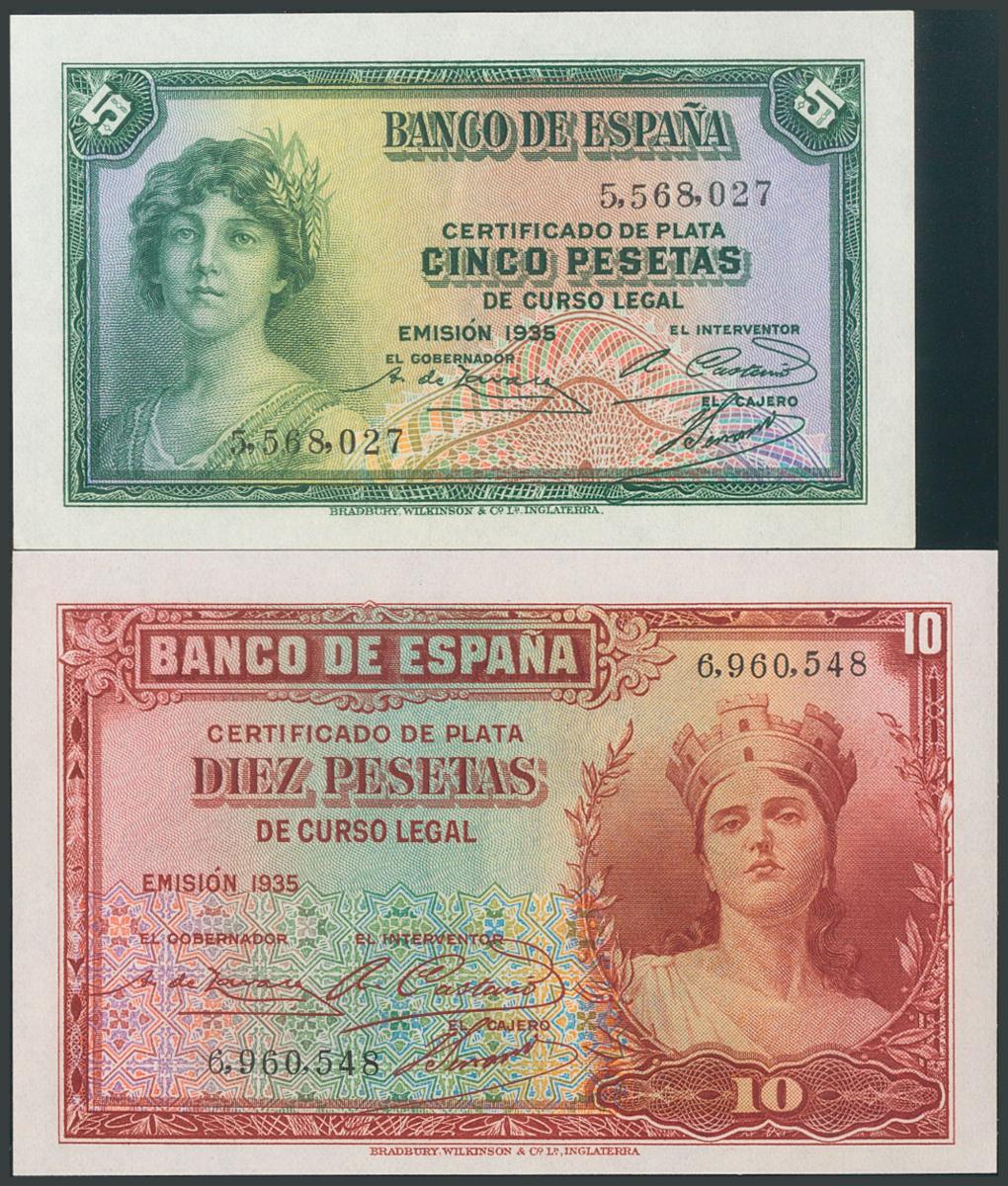 5 Pesetas y 10 Pesetas. 1935. Sin serie. (Edifil 2017: 363/64). SC.