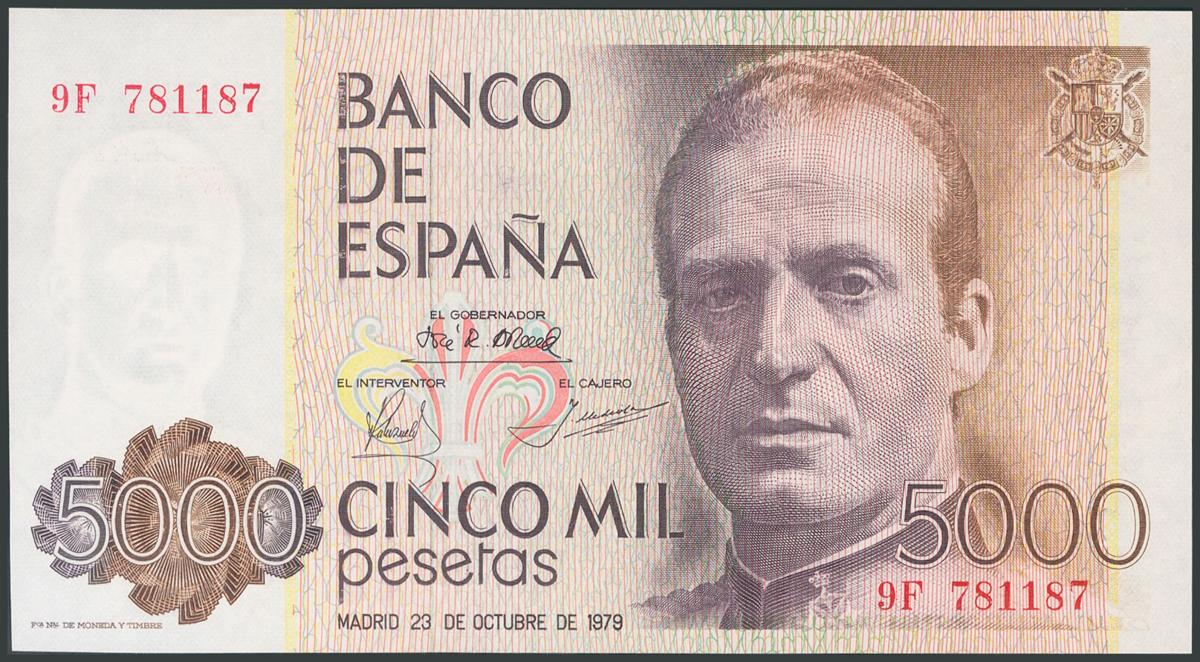 5000 Pesetas. 23 de Octubre de 1979. Serie 9F, numeración especial y capicúa. (Edifil 2017: 478b). Inusual. SC.