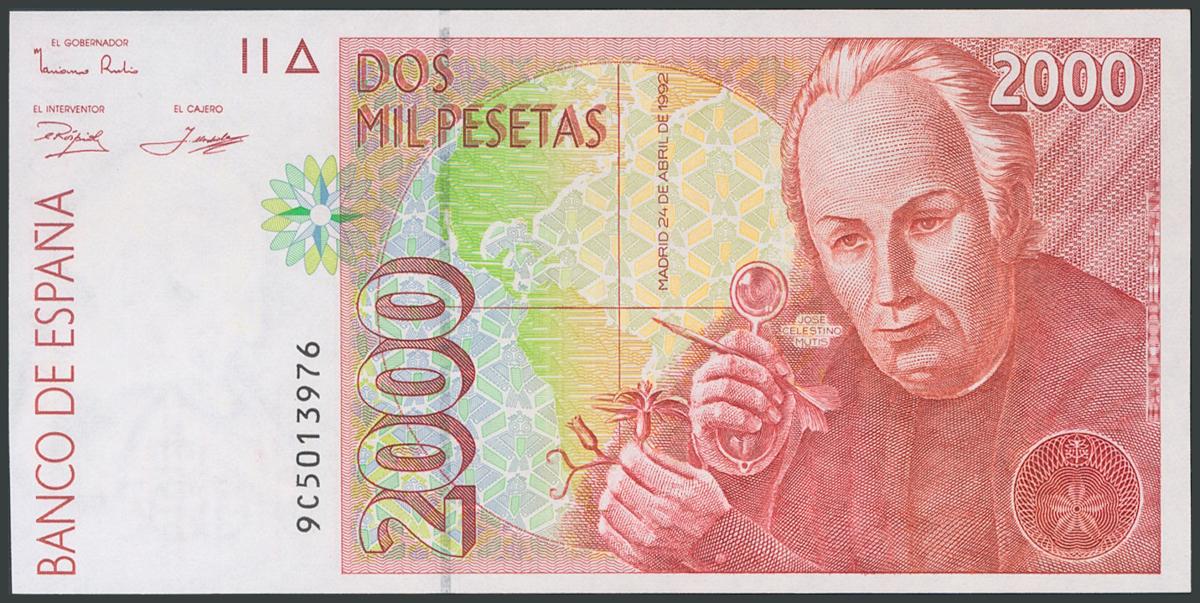2000 Pesetas. 24 de Abril de 1992. Serie 9C, numeración especial. (Edifil 2017: 482Ab). SC.
