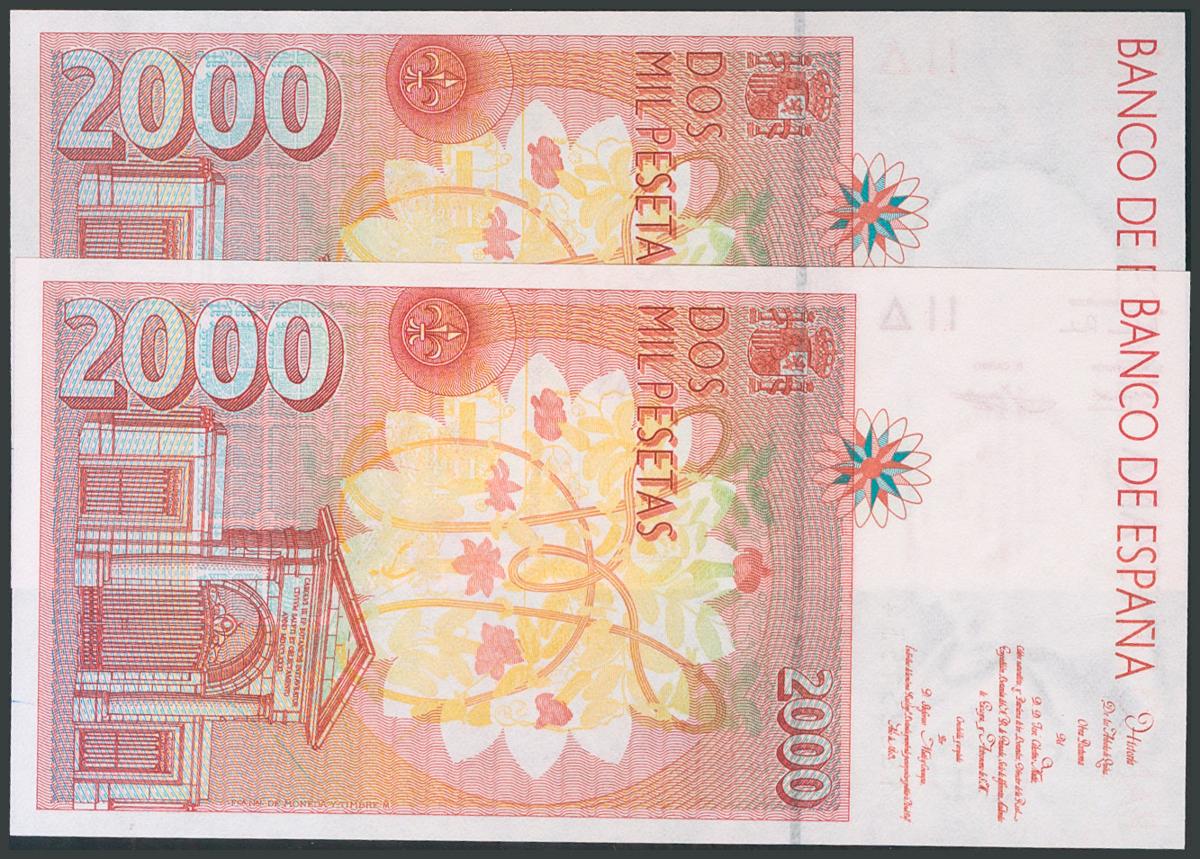 2000 Pesetas. 24 de Abril de 1992. Pareja correlativa. Serie 1S. (Edifil 2017: 482a). SC.