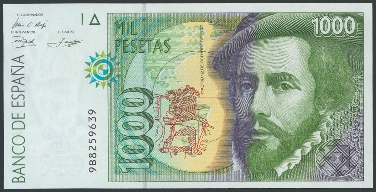 1000 Pesetas. 12 de Octubre de 1992. Serie 9B, numeración especial. Párpado oscuro. (Edifil 2017: 483d). SC.