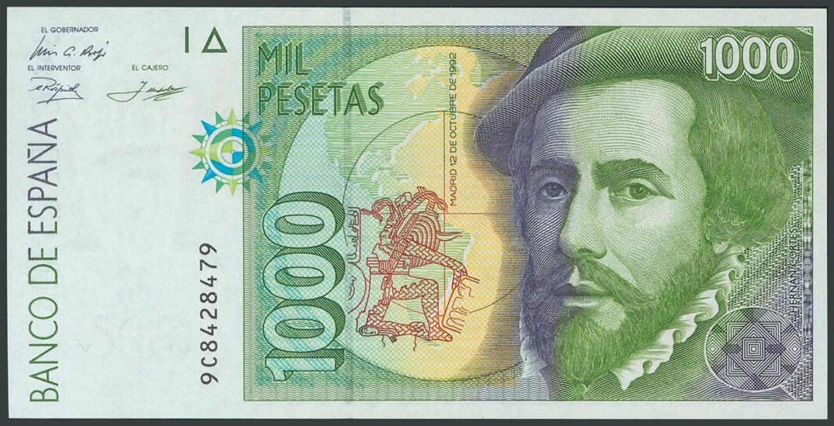 1000 Pesetas. 12 de Octubre de 1992. Serie 9C, numeración especial. Párpado oscuro. (Edifil 2017: 483c). SC-.