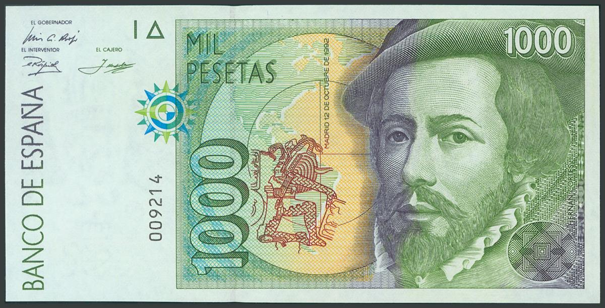1000 Pesetas. 12 de Octubre de 1992. Sin serie y numeración muy baja. (Edifil 2017: 483). SC.