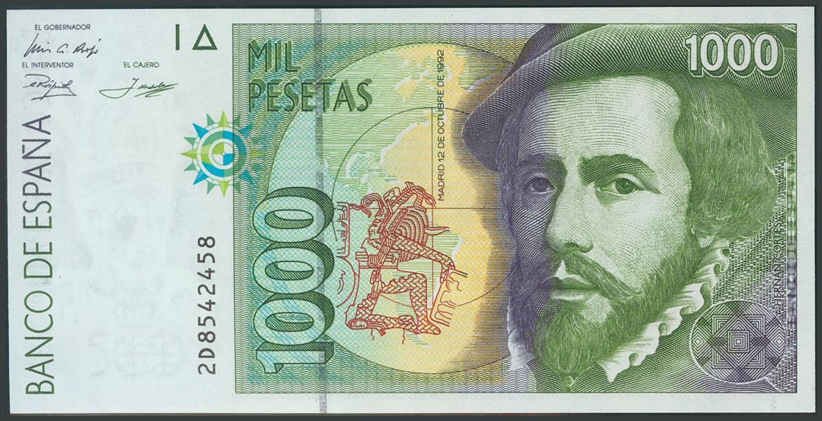 1000 Pesetas. 12 de Octubre de 1992. Tipo II. Serie 2D y numeración capicúa. (Edifil 2017: 483a). SC.