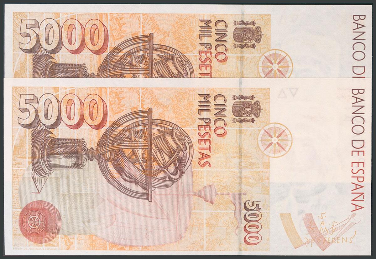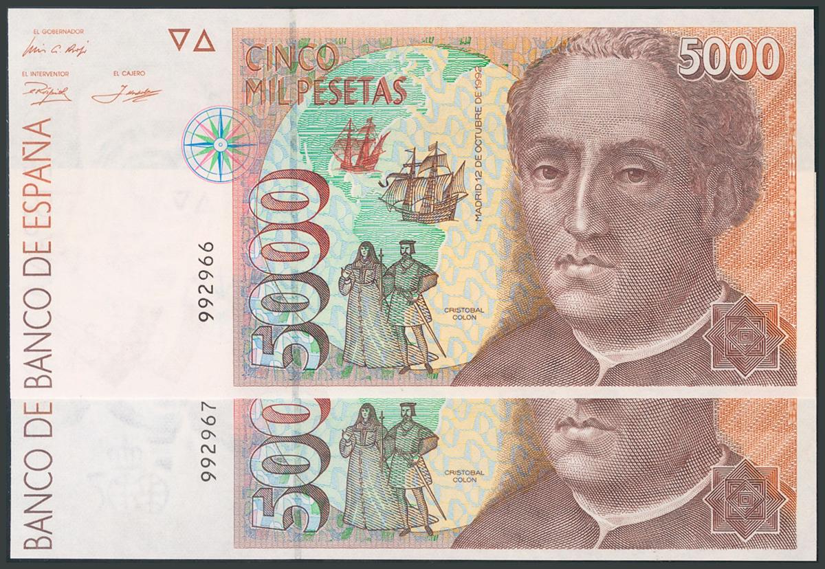 5000 Pesetas. 12 de Octubre de 1992. Pareja correlativa. Sin serie. (Edifil 2017: 484). SC.