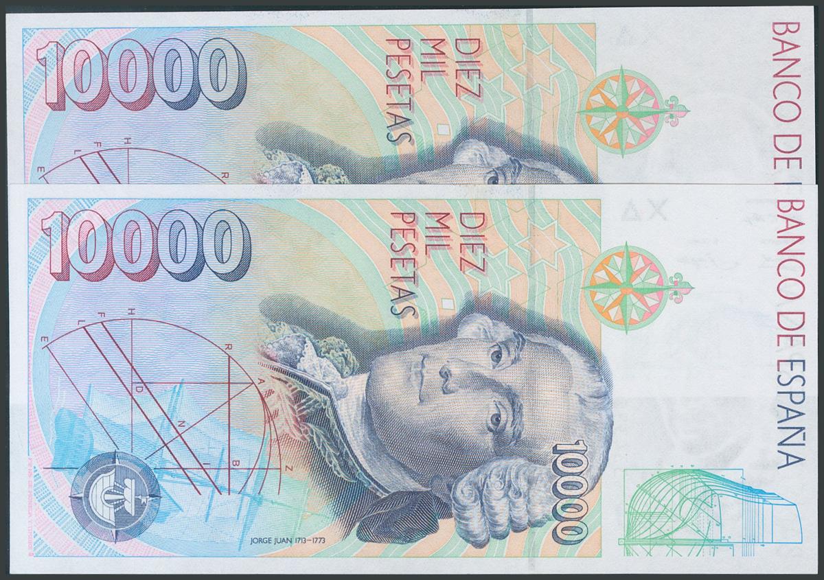 10000 Pesetas. 12 de Octubre de 1992. Pareja correlativa. Sin serie. (Edifil 2017: 485). SC.