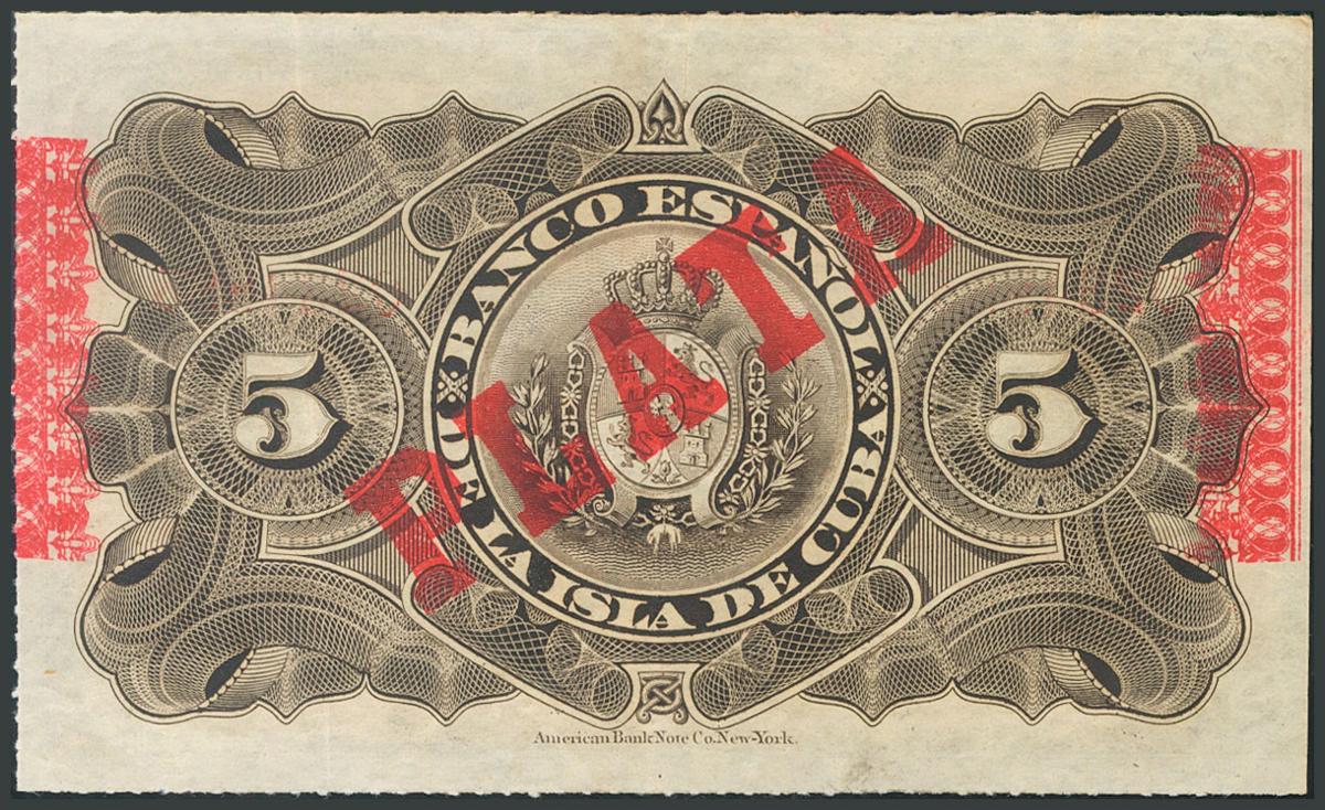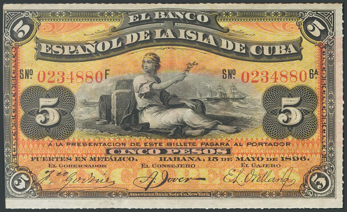 BANCO ESPAÑOL DE LA ISLA DE CUBA. 5 Pesos. 15 de Mayo de 1896. Serie F. Sobrecarga PLATA. (Edifil 2017: 81). MBC+.