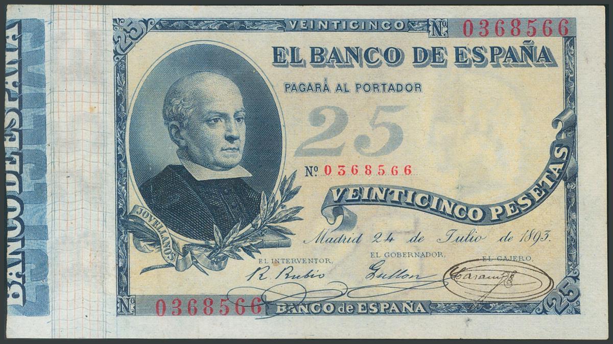25 Pesetas. 24 de Julio de 1893. Sin serie. (Edifil 2017: 300). Mínimamente reparado en el margen inferior. EBC+.