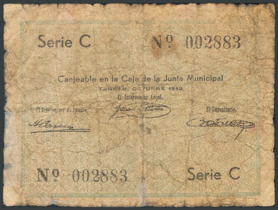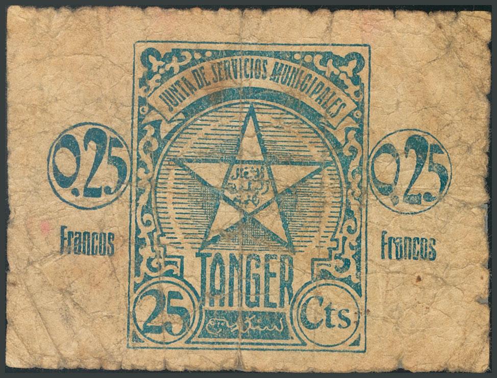 TANGER. 0´25 Francos. Octubre 1942. Serie C. (Edifil 2017: 1). Muy raro, presencia de cinta adhesiva. BC.