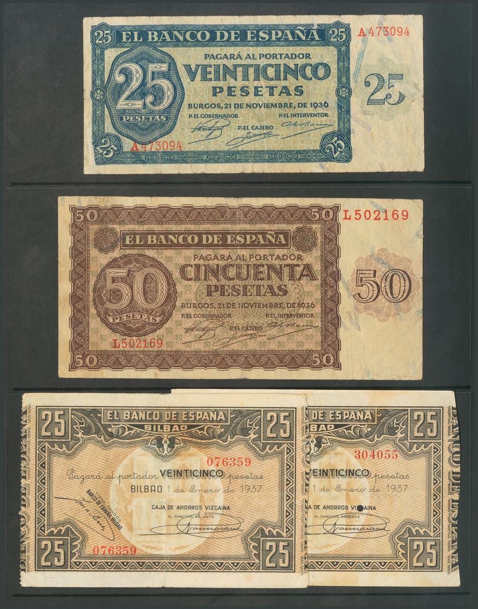 Conjunto de 16 billetes del Banco de España de diferentes emisiones y en diversas calidades. A EXAMINAR.