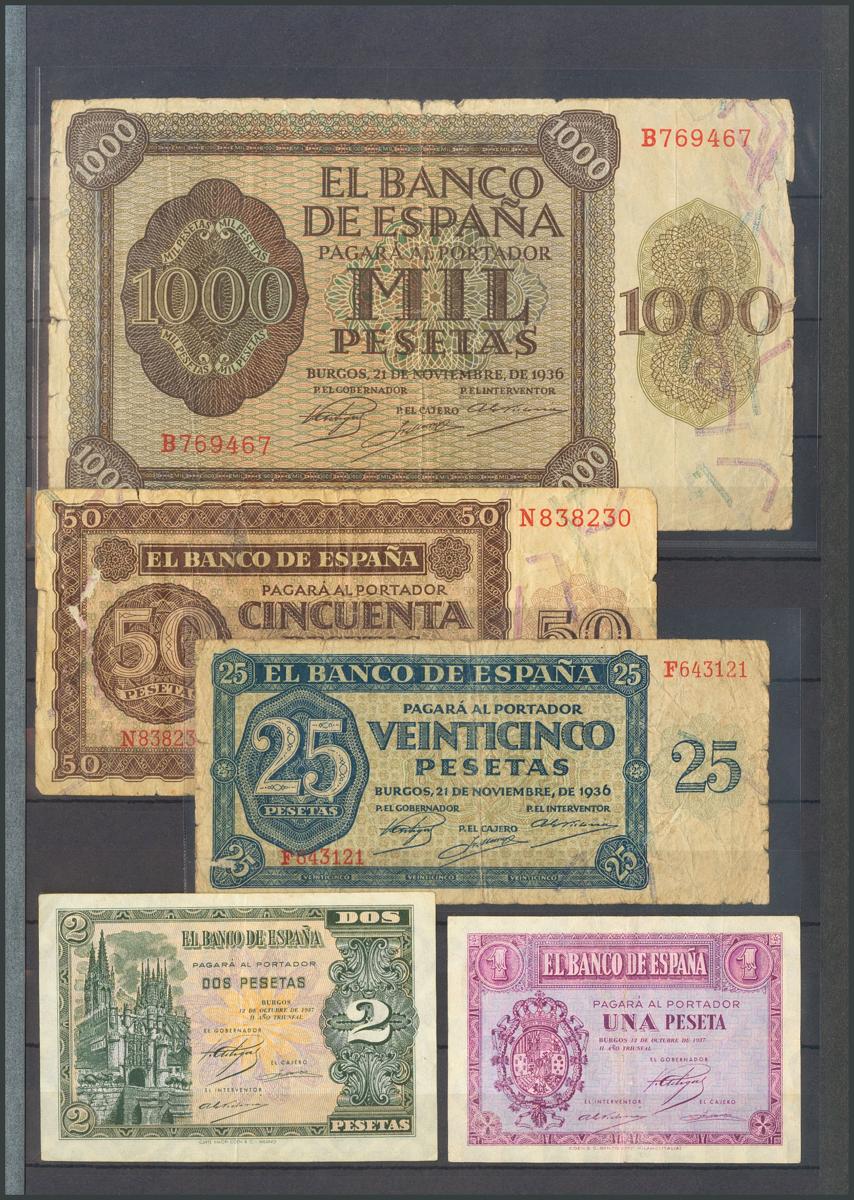Conjunto de 38 billetes del Banco de España en diversas calidades y diferentes emisiones, algunos verdaderamente raros e interesantes. A EXAMINAR.