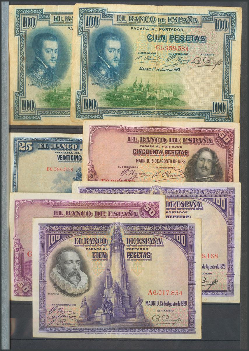Precioso conjunto de 133 billetes del Banco de España, muy variado y con la mayoría de las emisiones del siglo XX representadas, especialmente el Estado español, con muchos billtes de interés, además de 2 billetes de Alemania. A EXAMINAR.