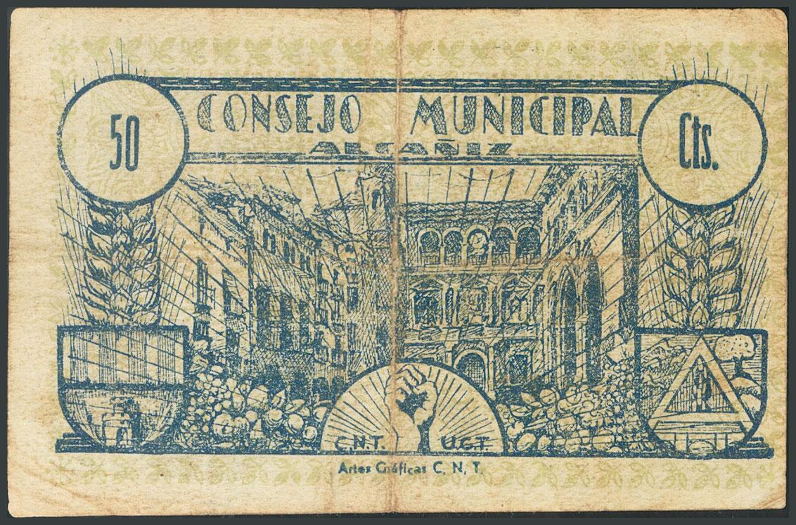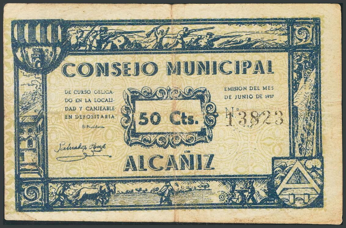 ALCAÑIZ (TERUEL). 50 Céntimos. Junio 1937. (González: 297). MBC.