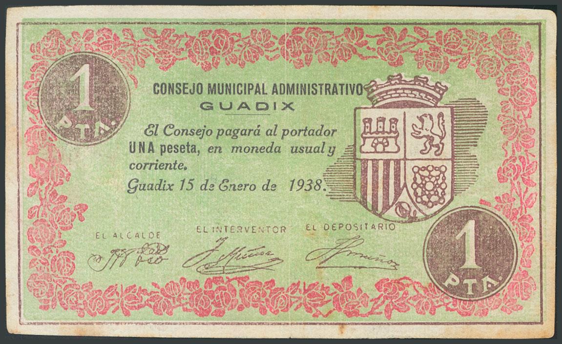 GUADIX (GRANADA). 1 Peseta. 15 de Enero de 1938. (González: 2772). MBC.