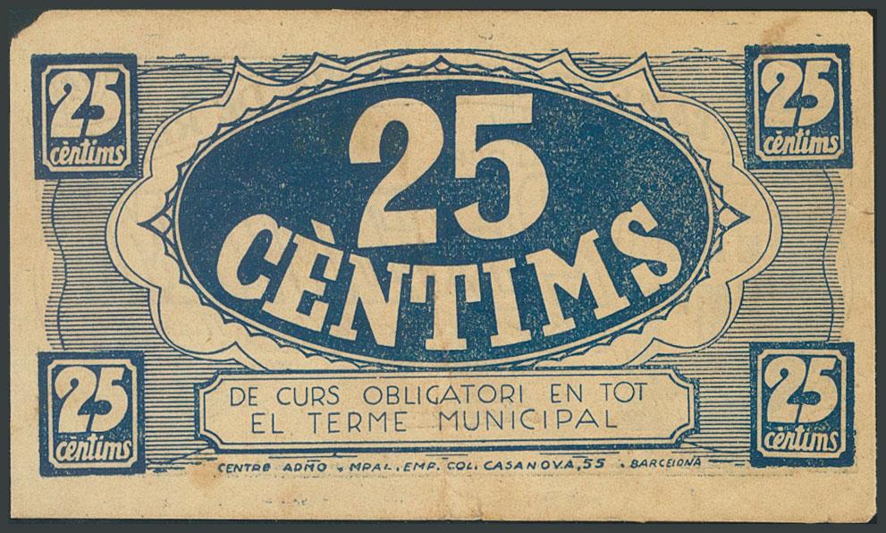 BARONIA DE RIALB (LERIDA). 25 Céntimos. 10 de Octubre de 1937. (González: 6903). BC.