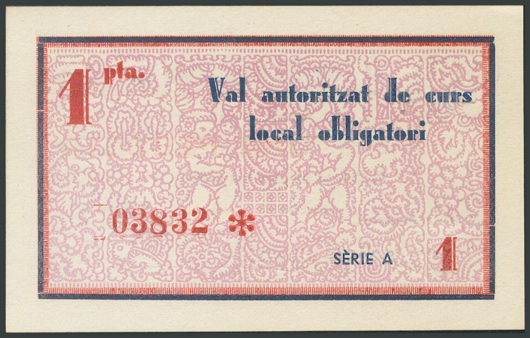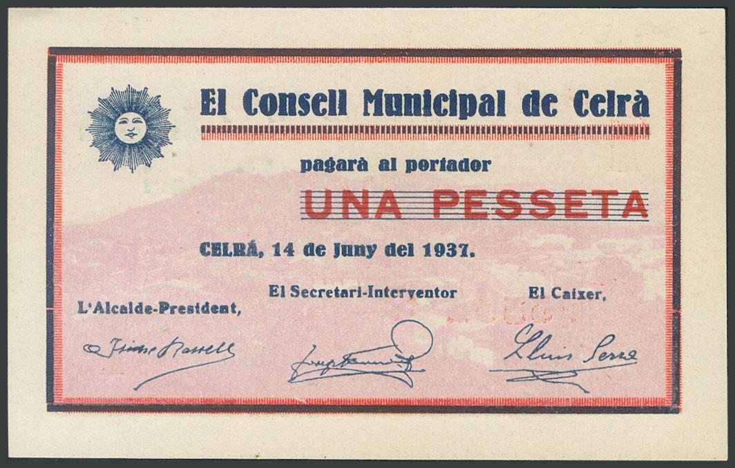 CELRA (GERONA). 1 Peseta. 14 de Junio de 1937. Serie A. (González: 7545). SC.