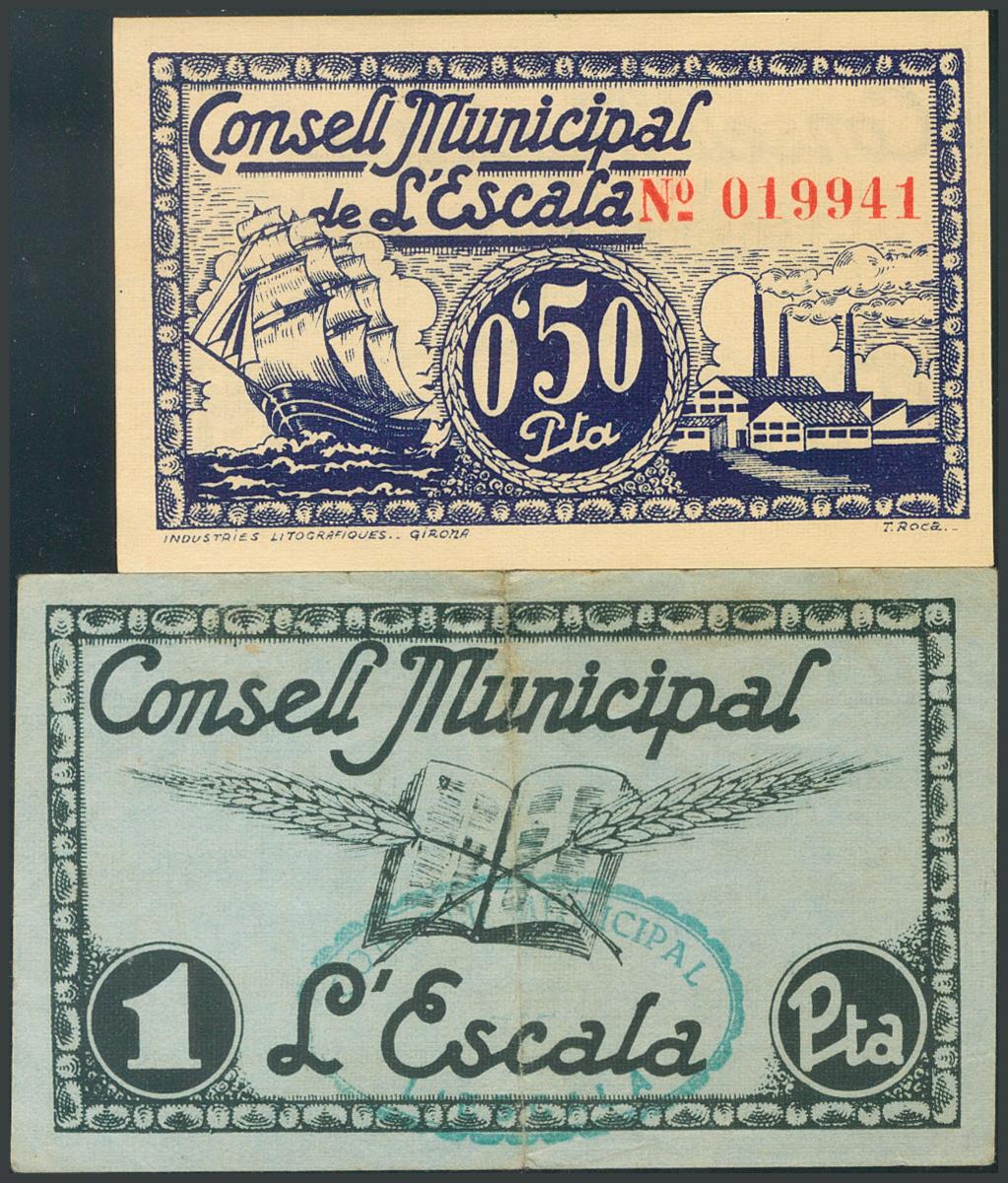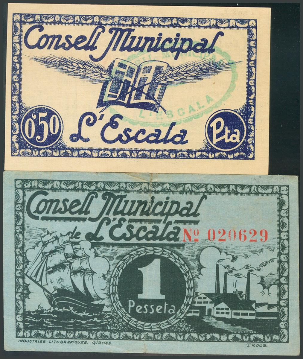 ESCALA (GERONA). 50 Céntimos y 1 Peseta. Abril 1937. (González: 7740/41). SC/MBC.