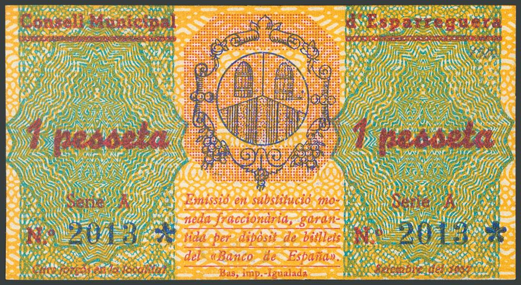 ESPARREGUERA (BARCELONA). 1 Peseta. Septiembre 1937. (González: 7749). SC.