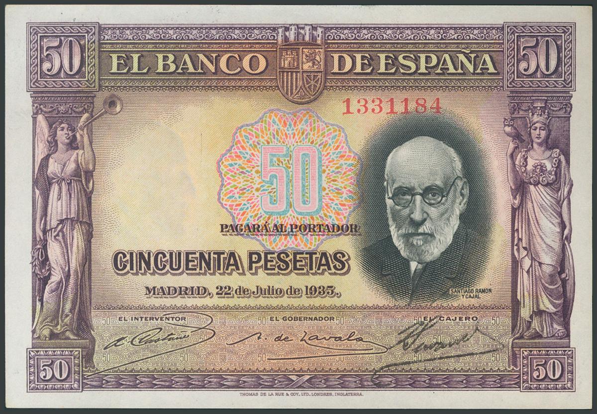 50 Pesetas. 22 de Julio de 1935. Sin serie. (Edifil 2017: 366). Apresto original. SC.