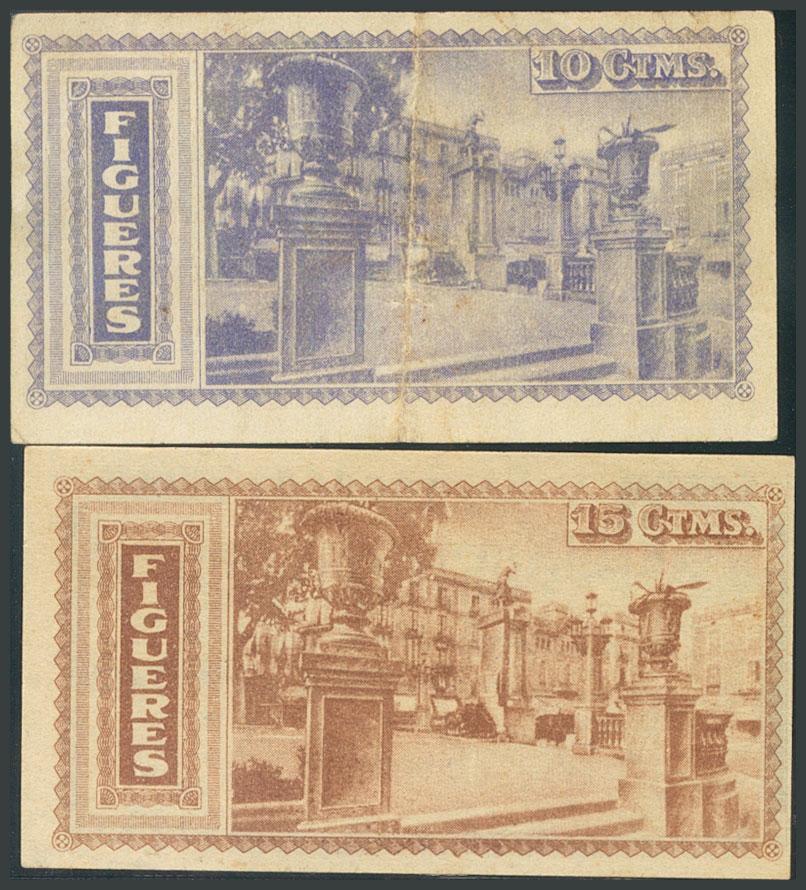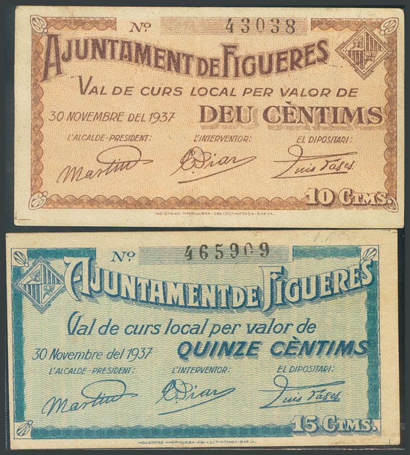 FIGUERES (GERONA). 10 Céntimos y 15 Céntimos. 30 de Noviembre de 1938. Sin serie. (González: 7852/53). Serie completa. EBC/SC-.