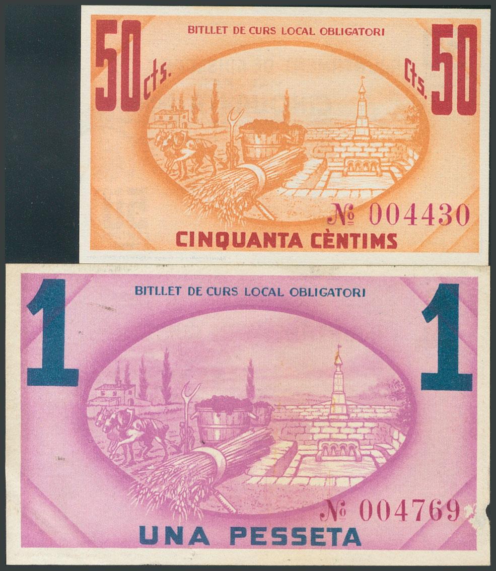 GUISSONA (LERIDA). 50 Céntimos y 1 Peseta. 2 de Agosto de 1937. (González: 8180, 8181). SC/EBC+.