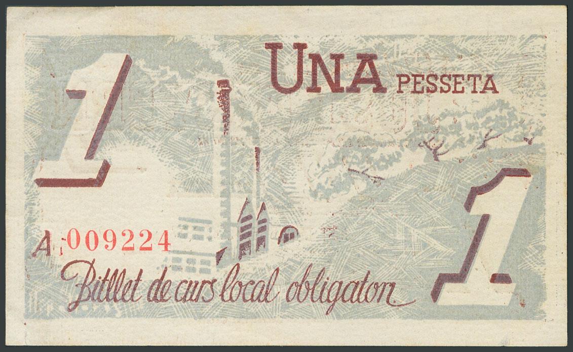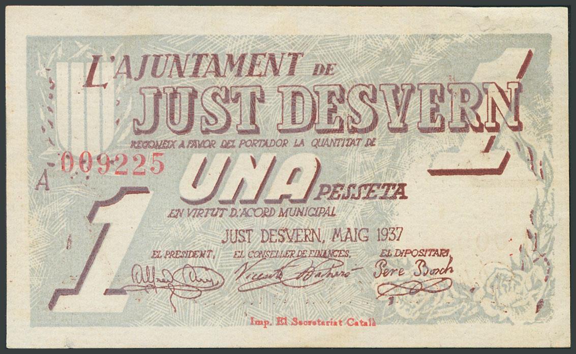 JUST DESVERN (BARCELONA). 1 Peseta. Mayo 1937. Serie A. (Edifil 2017: 8301). SC-.