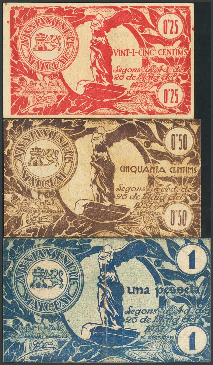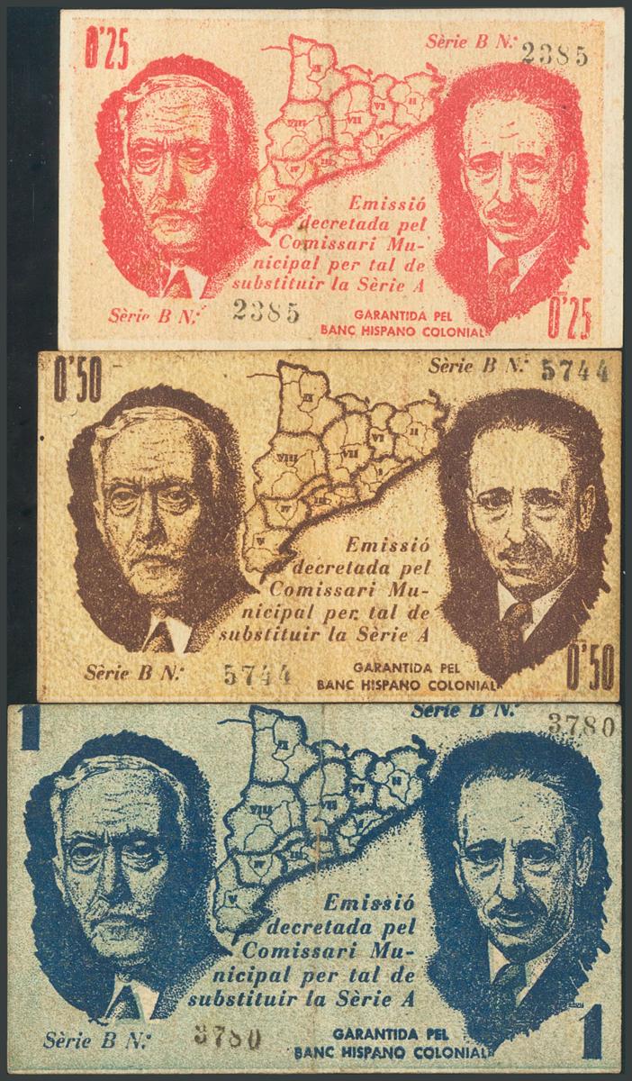 MALGRAT (BARCELONA). 25 Céntimos, 50 Céntimos y 1 Peseta. 26 de Mayo de 1937. Serie B, todos. (González: 8477, 8478, 8479). EBC/MBC-.