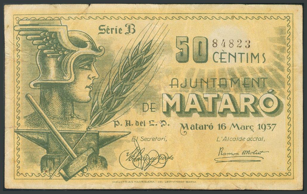 MATARO (BARCELONA). 50 Céntimos. 16 de Marzo de 1937. Serie B. (González: 8658). MBC.