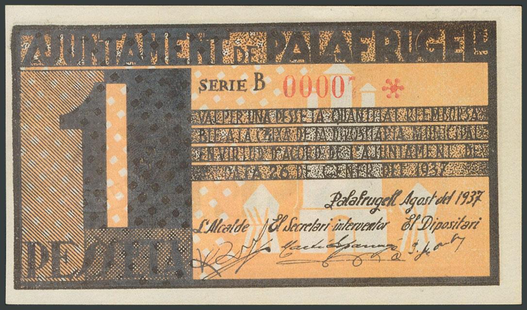 PALAFRUGELL (GERONA). 1 Peseta. Agosto 1937. Serie B. (González: 9074). SC-.