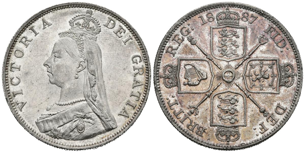 GRAN BRETAÑA. 2 Florines. (Ar. 22,61g/36mm). 1887. Reina Victoria. (Km#763). EBC+. Preciosa pátina.