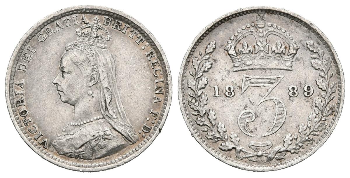 GRAN BRETAÑA. 3 Pence. (Ar. 1,40g/15mm). 1889. Reina Victoria. (Km#758). MBC+.