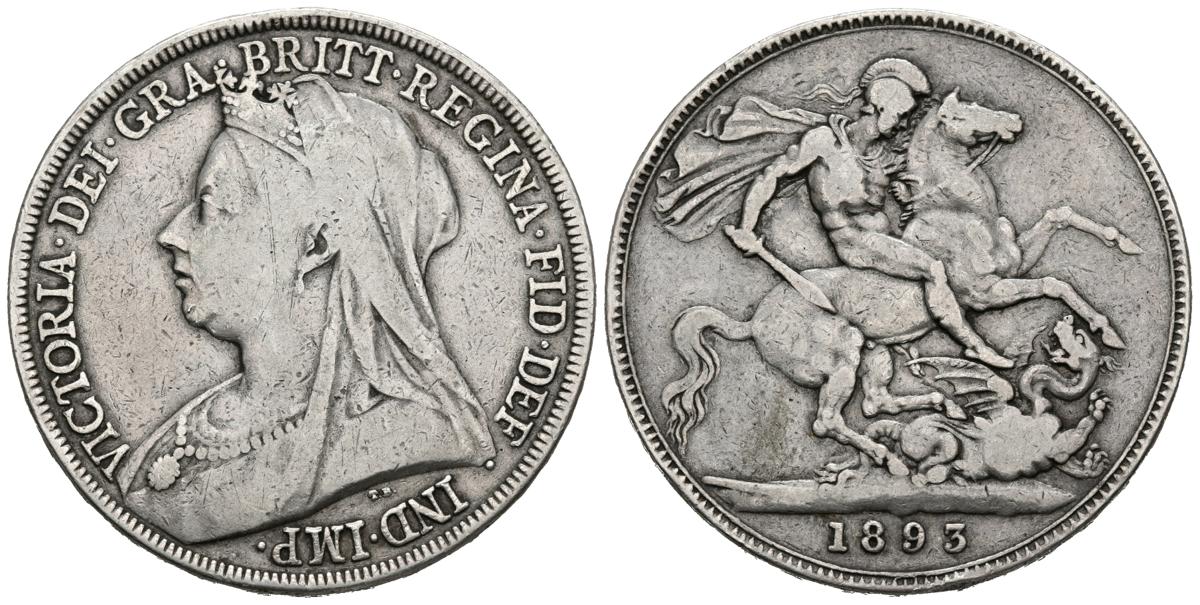 GRAN BRETAÑA. 1 Crown. (Ar. 27,73g/38mm). 1893. Reina Victoria. (Km#783). MBC-.