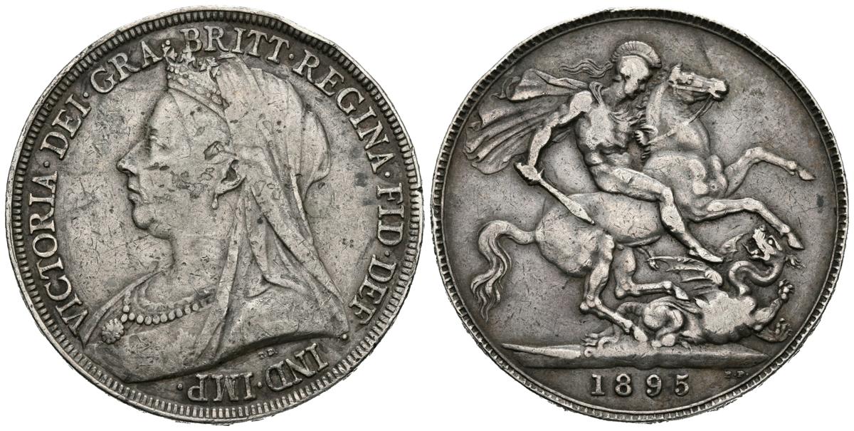 GRAN BRETAÑA. 1 Crown. (Ar. 28,20g/38mm). 1895. Reina Victoria. Año LIX. (Km#783). MBC-. Brillo artificial. Golpe en el canto.