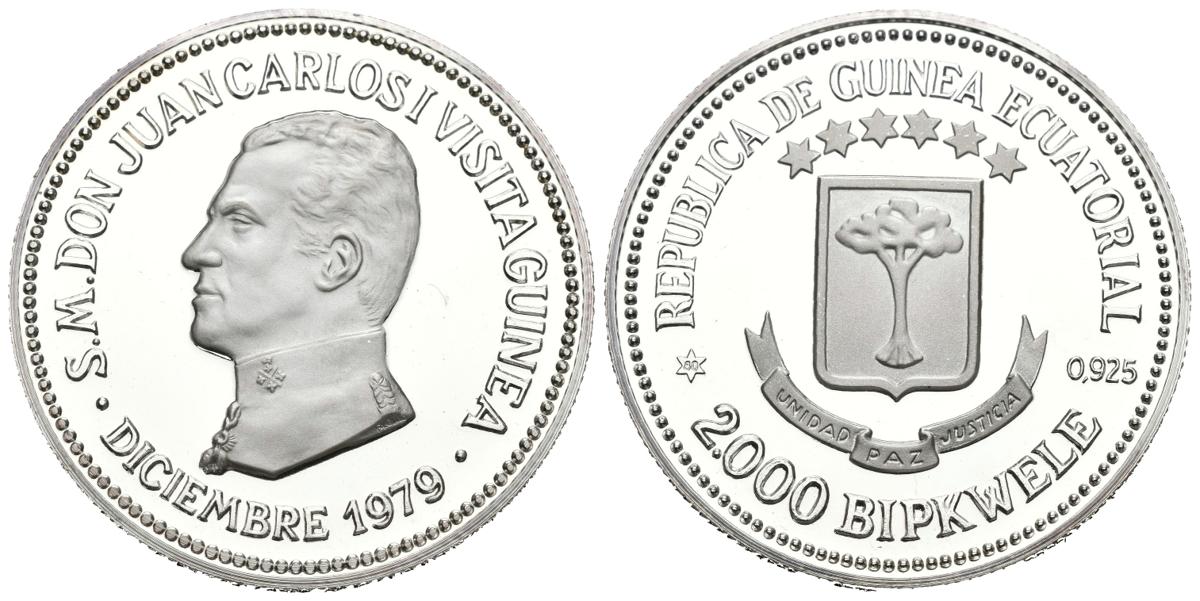 GUINEA ECUATORIAL. 2000 Bipkwele (Ar. 25,16g/40mm). 1979. Visita de Juan Carlos I a Guinea. (Km#45). PROOF. Incluye estuche original y certificado de autenticidad.