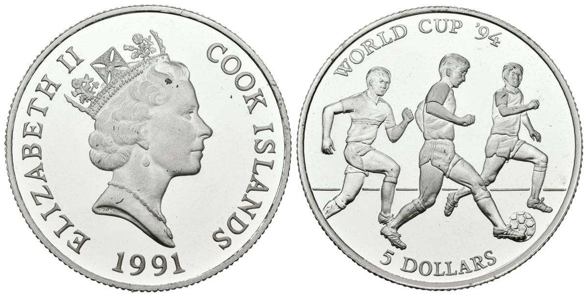 ISLAS COOK. 5 Dollars. (Ar. 10,00g/30mm). 1991. (Km#149). PROOF.