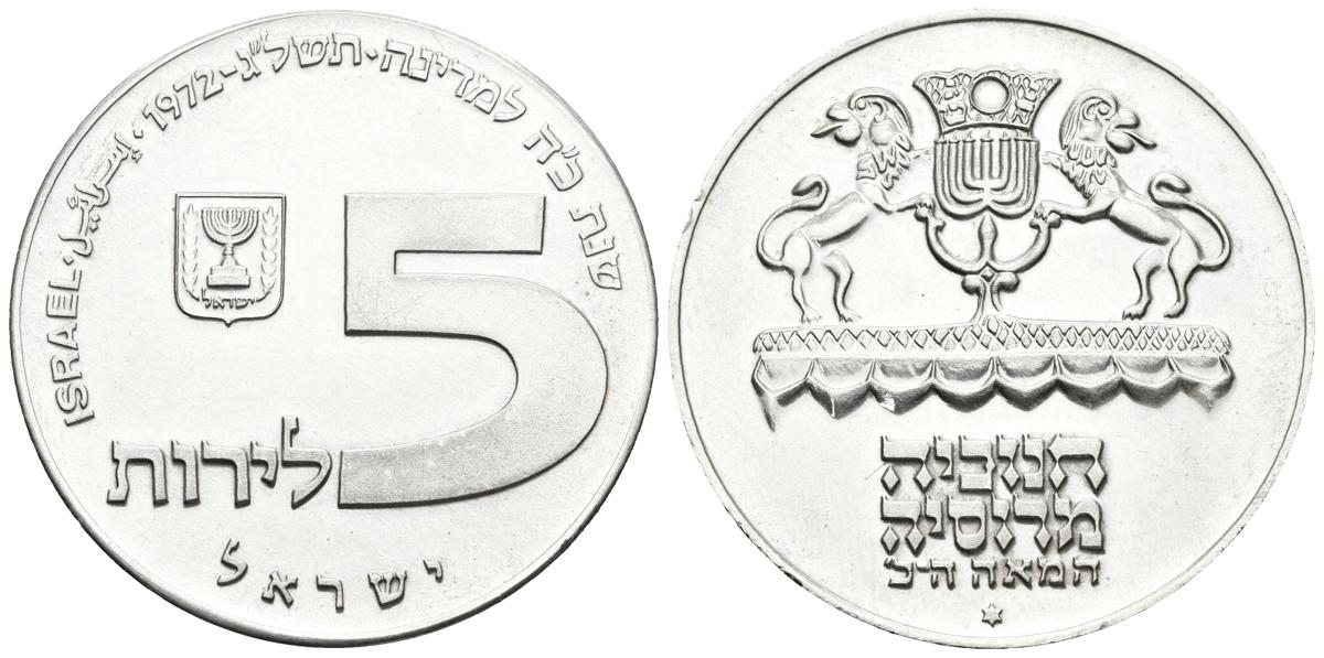ISRAEL. 5 Lirot. (Ar. 20,24g/38mm). 1972. (Km#69.1). SC.