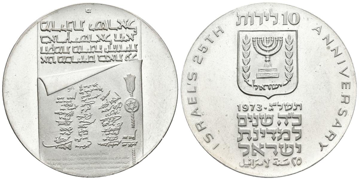 ISRAEL. 10 Lirot. (Ar. 26,27g/37mm). 1973. Aniversario de la Independencia. (Km#71). SC.