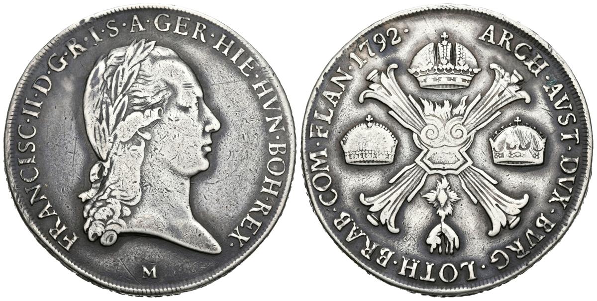 ITALIA. 1 Crocione. (Ar. 29,14g/40mm). 1792. Milán M. (Km#239). MBC. Pequeño agujero tapado a las 11h.