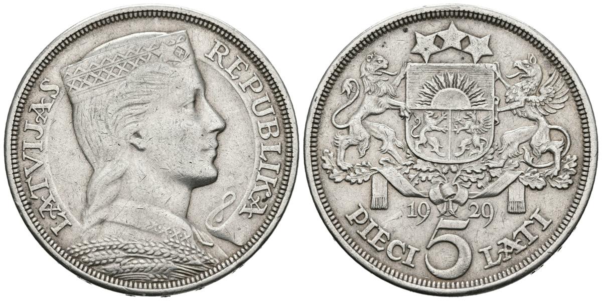 LITUANIA. 5 Lati. (Ar. 25,01g/37mm). 1929. 1ª República. (Km#9). MBC/MBC+.